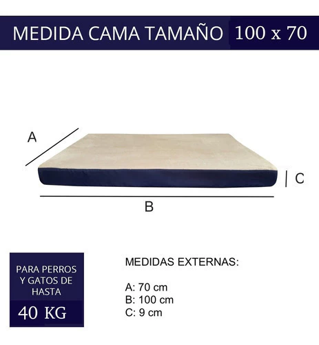 - Las medidas son de 100 cm de largo por 70 cm de ancho y 9 cm de alto.